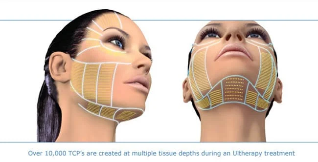 A energia de ultrassom é focada em um ponto abaixo da superfície da pele, concentrando-se em uma área de cerca de 1mm cúbico por ponto, provocando a contração imediata do colágeno. Esse intenso ataque de ultrassom dá início a síntese de colágeno novo, enquanto o tecido retrai e fica mais firme.