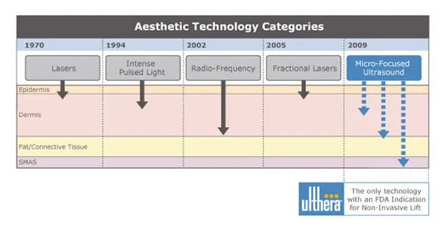 Ulthera ®, Ultherapy ®, foi a primeira  tecnologia aprovada pelo FDA, há 6 anos,  como lifting facial não cirúrgico. Disponível no Brasil há 5 anos, Ulthera ou Ultherapy é baseado em uma variação do ultrassom focado, uma forma de ultrassom focado de alta intensidade, conhecido como HIFU (high intensity foccused Ultrasound).